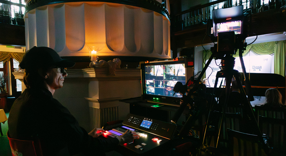 «Tuvimos que crear una manera de trabajar confiable para la producción en directo, teniendo en cuenta la importancia histórica y acústica del lugar», explicó Marcin Andrzejewski, fundador y gerente de producción de relacje.video. «Los factores primordiales eran la contaminación sonora, el acceso y la calidad de imagen. No podíamos hacer ruido durante las actuaciones y todo debía pasar inadvertido, pero, aun así, debíamos transmitir en resolución 4K para la televisión y las redes sociales».
