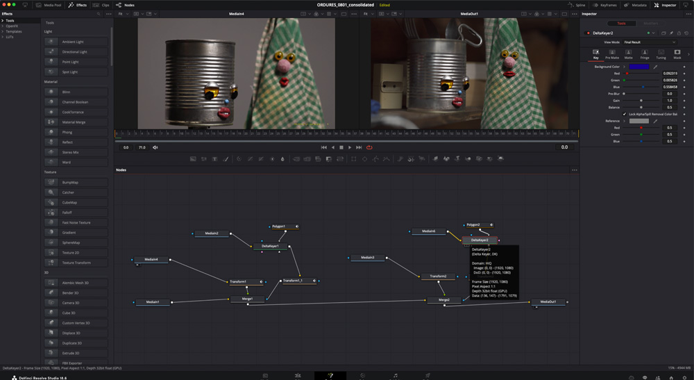 La colaboración en la nube mediante DaVinci Resolve Studio contribuyó a la continuidad de todos los aspectos de la producción. Primero se filmaron las escenas de acción, para posteriormente proceder a su edición y efectuar un etalonaje previo en DaVinci Resolve Studio. «A medida que la animación y la edición se llevaban a cabo en Foliascope, el director continuaba grabando y editando en París. Compartimos la línea de tiempo constantemente con el colorista de manera remota para etalonar las imágenes de la acción que usamos como base, antes de importarlas a Dragonframe para llevar a cabo la animación en volumen», explicó Flory.