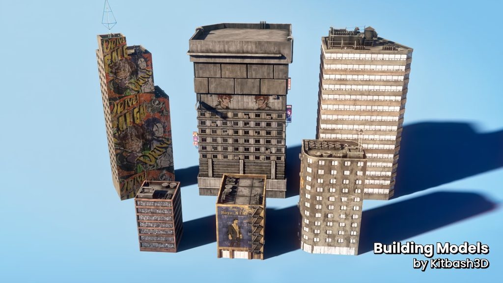 Theorin: Dar vida al mundo de “Rush Order” dependió en gran medida de los recursos de Kitbash3D, y casi todos los recursos de fondo se originaron a partir de uno de sus kits Cyberpunk. Sin embargo, antes de incorporarlos a Cinema 4D, tuve que retexturizarlos todos en Substance Painter para que coincidieran con el aspecto pictórico estilizado de nuestros personajes. Fue un proceso bastante sencillo, usando un preajuste pictórico que pegué con cinta adhesiva a partir de varios paquetes de materiales. Para los edificios, me aseguré de aprovechar las nuevas herramientas UDIM de Cinema 4D para maximizar el detalle. Una vez texturizados y sombreados todos los recursos en Cinema 4D, simplemente fue cuestión de construir los entornos. Como un niño con piezas de Lego, organicé manzanas, carreteras y callejones.