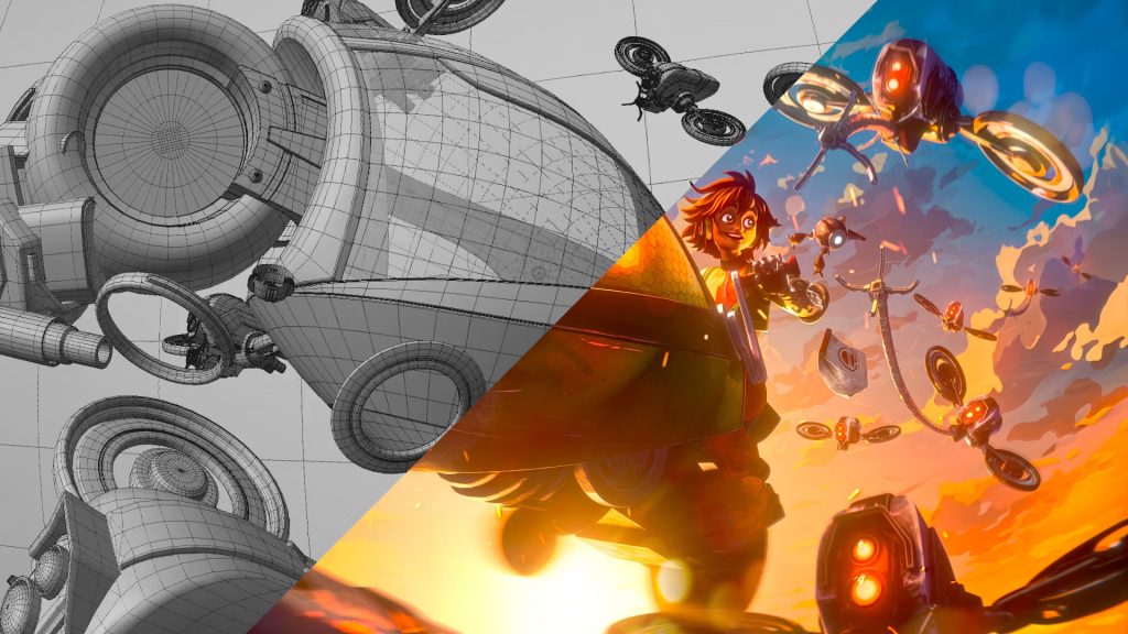 Theorin: A pesar de todo el desarrollo que hemos hecho en esta IP, la protagonista, Lucy, nunca ha tenido una transformación completa. Lo que sí tenía eran un montón de poses, expresiones y diseños que usamos para crear un collage de referencias para nuestro escultor. Una vez recopilados en un solo documento, los envié a nuestros amigos de Toonz para que los esculpiran en ZBrush mientras yo me centraba en modelar los accesorios y los entornos. Crearon las formas clave del personaje poco a poco antes de combinarlas, suavizarlas y esculpirlas con detalles adicionales. A pesar de no tener una transformación completa y del plazo ajustado, Toonz lo logró, dando vida a este personaje de estilo anime. A partir de ahí, ¡pasé a Cinema 4D para añadir mis ajustes y rigarlo todo!