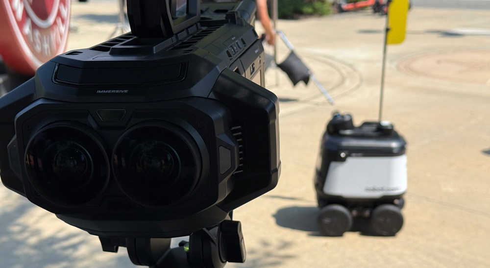 «Robot.com es el típico cliente de la industria de la tecnología que recibimos en Sandwich: una empresa que trabaja con innovaciones que cambiarán al mundo y que acude a nosotros para que produzcamos una gran campaña para su marca. Grabamos el comercial con nuestro equipo de filmación tradicional en Nashville. Fue un rodaje para los “rectángulos en 2D”, que es como yo les digo ahora a las pantallas tradicionales. Tenía las esperanzas puestas en que la URSA Cine Immersive llegara a tiempo para usarla en la filmación, y así fue», explicó. «A partir de ese momento, intenté estar en cada rincón del set. El desafío al que me enfrentaba era el de captar la historia y a la vez mantener a todo el personal y nuestras herramientas fuera del campo de visión, que era enorme».